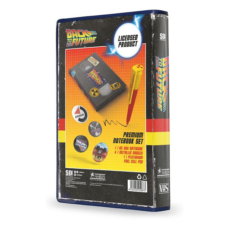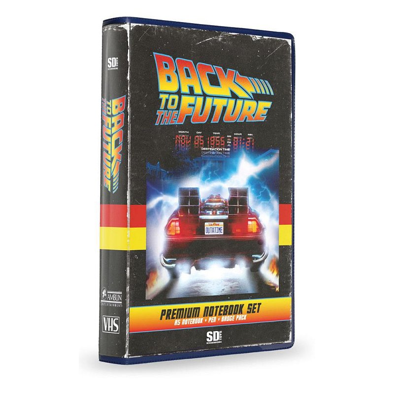 Straight from the ´Back to the Future´ movies comes this cool stationery set. It features a VHS notebook, 4 metallic badges and 1 gel pen.