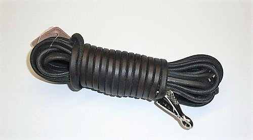 Barvářská šňůřa z kulaté hnědé kůže s karabinou, délka 10 m
