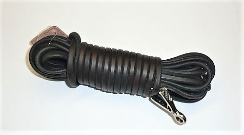 Barvářská šňůra z kulaté hnědé kůže s karabinou 6 m