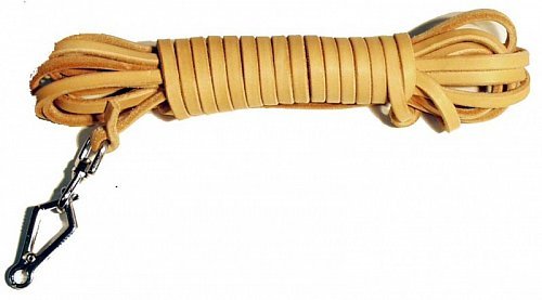 Barvářská šňůra z kulaté přírodní kůže s karabinou, délka 6 m
