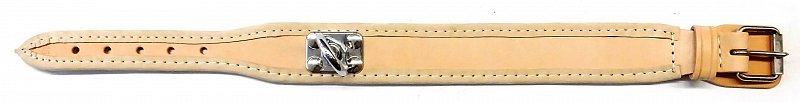 Barvářský obojek v přírodním provedení, obojek podšitý tenkou kůží a s podložením přezky.