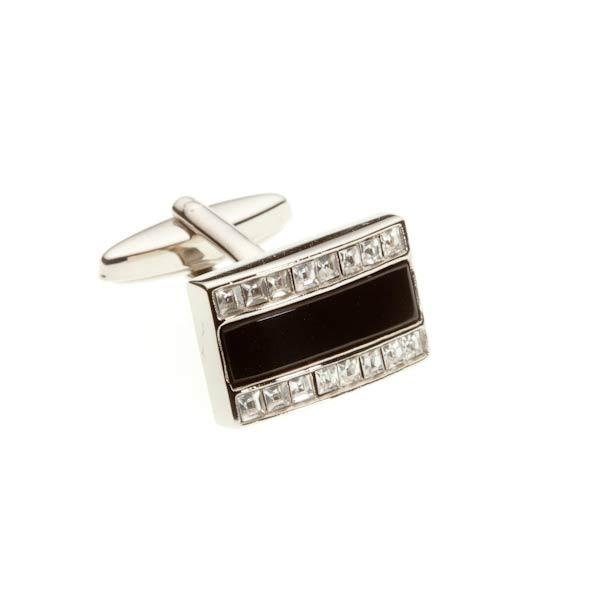 Černé manžetové knoflíčky osazené obdélníkovým polodrahokamem z onyxu a šestnácti malými křišťálky
