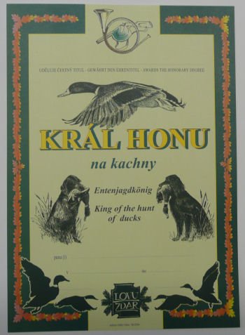 Čestný titul Král honu na kachny za úspěšný lov, cena uvedena za kus, rozměr A4