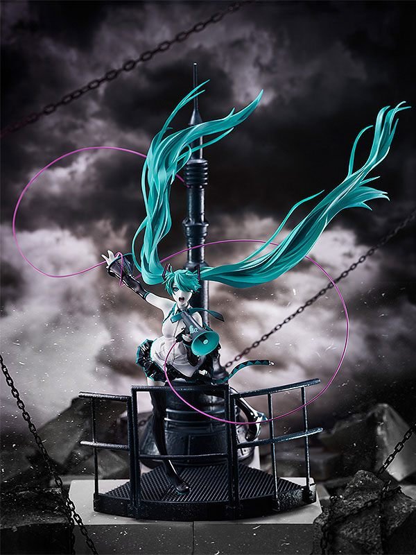 Shirou Miwa\'s illustration has been faithfully recreated, with key details like the contrast between Miku\'s pale skin and her vivid hair color masterfully captured in figure form. Miku is posed holding a megaphone in one hand as she leans over the railing to shout, with her skirt and hair waving wildly as though blown by the wind. Be sure to add this dynamic, powerful figure of a girl entrenched in a war of love to your collection!