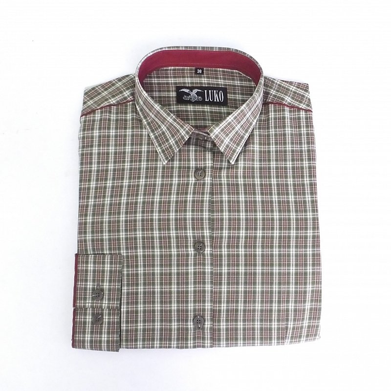 Dámská vypasovaná halenka z vysoce kvalitní 100% bavlny - jemný a měkký twill. Materiál je lehký 125 g/m2 a velmi příjemný na omak. Halenka se velmi snadno udržuje a žehlí. Kombinace laděná do barvy vzoru a jemná paspulka vsazená do manžety u rukávu oživují celkový vzhled. Střih je odzkoušený a sedí většině žen i díky prsním záševků. Tabulku měr naleznete níže.
