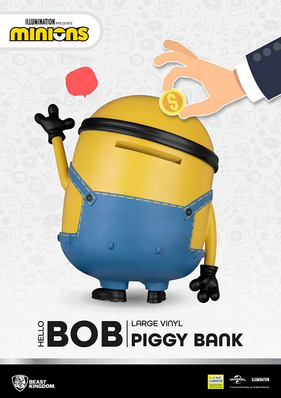 For fans of The Minions, those little, yellow balls of fun, Beast Kingdom has you covered. \'The Entertainment Experience Brand\' is ready to unleash a seismic sized piggy bank of epic proportions! Say hello to \'Bob\', one of the many Minions from The Despicable Me series of animated features! Here the lovable sidekick is not only huggable and adorable as a figurine, but also doubles as a trusty piggy bank ready to save all your spare change! Made of high quality vinyl material, this cute yet functional collectable is ready to supercharge your savings today!