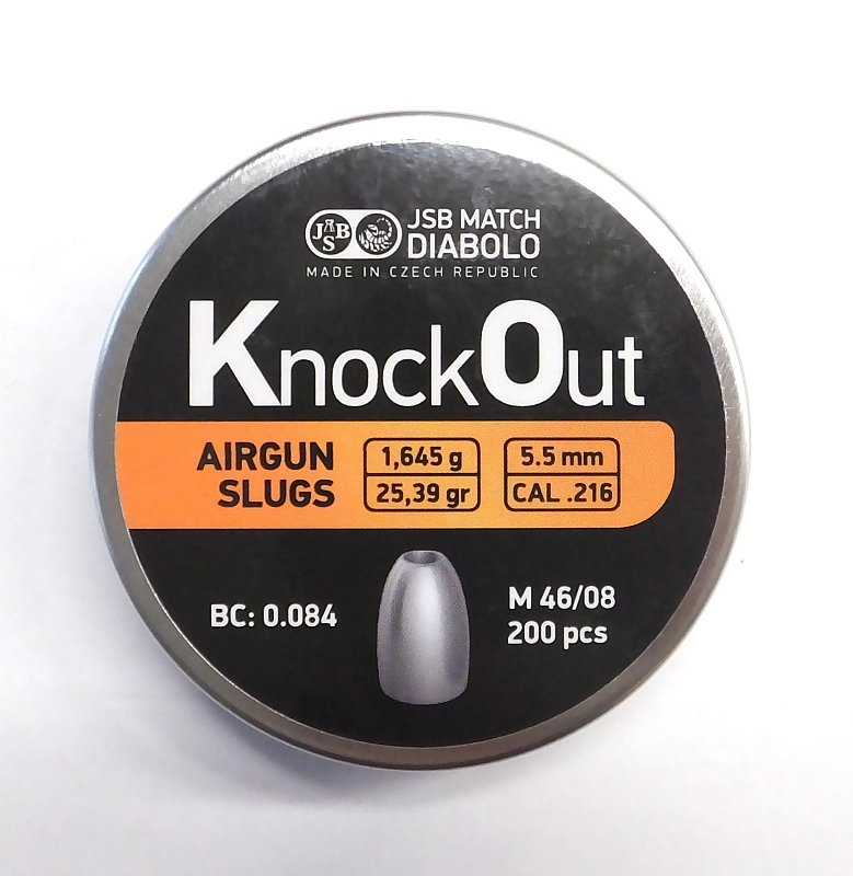 JSB KnockOut Slugs jsou opravdu těžká váha ve své třídě. S hmotností 25.39 grainu (1,645 g) činí jejich balistický koeficient 0.084. Nabízí velmi dobrý přenos energie na cíl a vysokou přesnost.