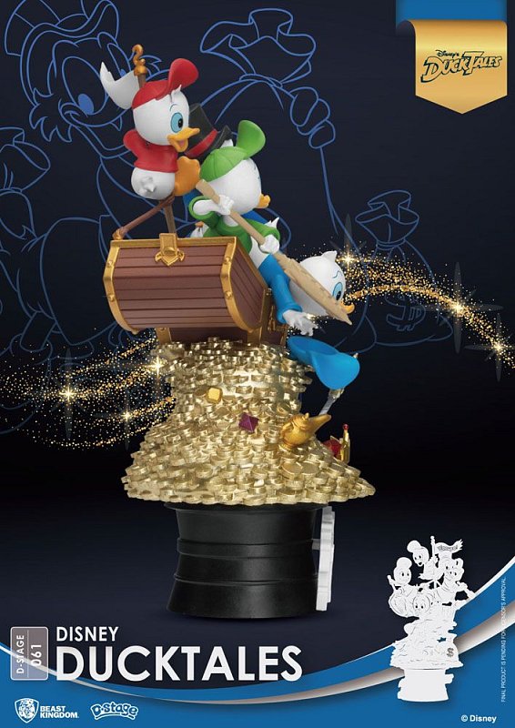 In 1987 was the year that \'DuckTales\', the infinitely outlandish TV animated series was released, following the escapades of Huey, Dewey and Louie as well as their uncle Scrooge McDuck, the richest duck in the world, the family is often on the hunt for treasure across 4 season of fun and mayhem. The D-Stage diorama definitely follows this theme with a fortune of coins and treasures (not unlike Scrooge\'s own personal bank) and sees our fun-loving family on top seeking new adventures and loot to score!