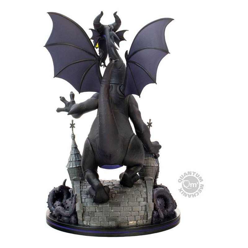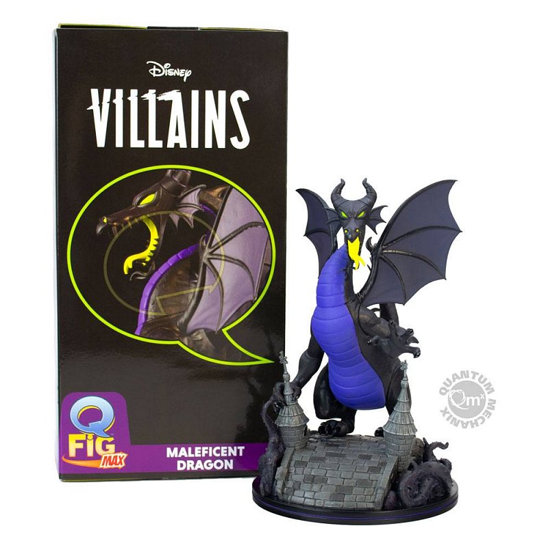 Inspired by the classic Disney animated film Sleeping Beauty, The Maleficent Dragon Q-Fig Max Elite presents Maleficent in her terrifying dragon form as she engages in battle with Prince Phillip. Maleficent\'s stunning black and purple scales juxtapose perfectly against her glowing yellow eyes and her forked tongue as she prepares to unleash flaming fury. Maleficent\'s Dragon form is massive, From her intricately sculpted horns to her colossal wingspan, Maleficent is simply the ultimate collectible for any Disney fan.