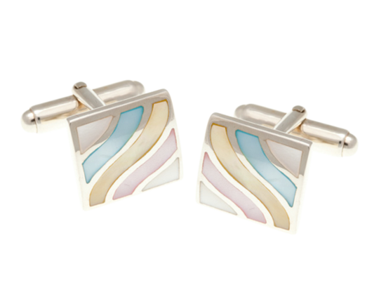Elegantní stříbrné manžetové knoflíčky s jemnými barevnými vlnkami z perleti v dárkové krabičce zdarma.