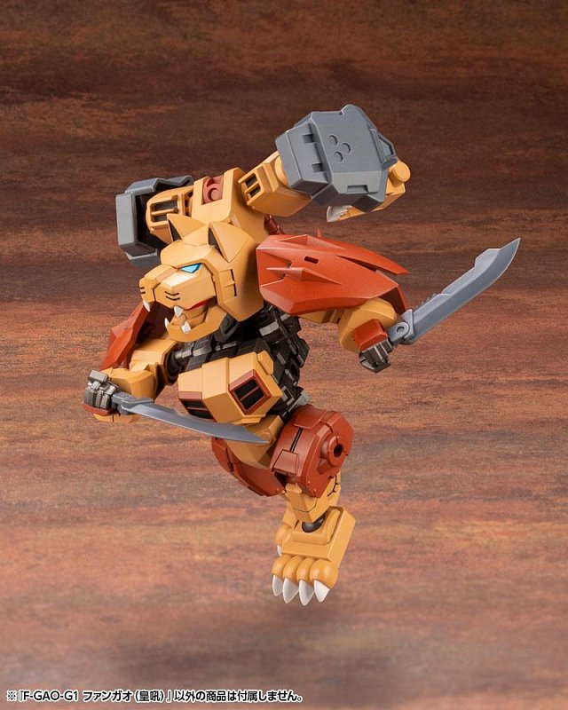 - The model\'s main color scheme is orange and red, with a gunmetal core, a clear red visor, and clear blue lion eyes. The kit also includes sticker decals to recreate the design from the illustration.