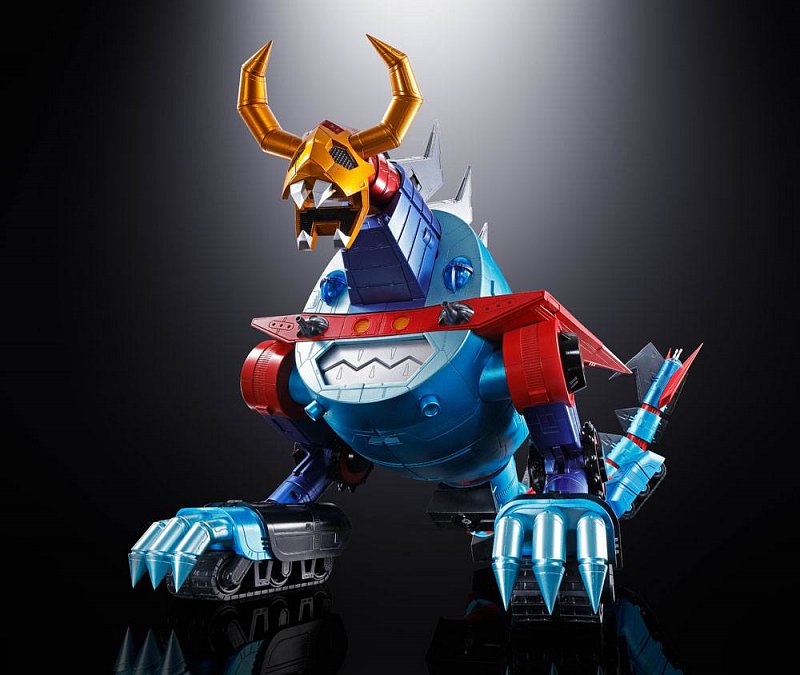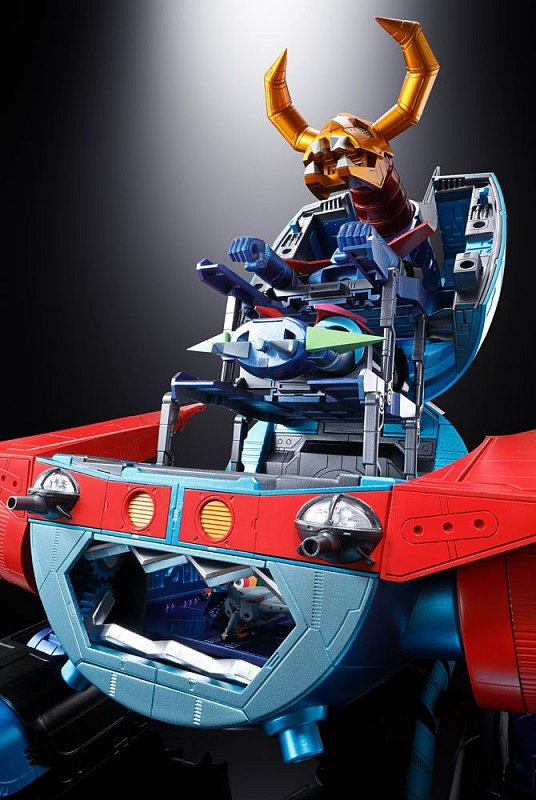 The largest Soul of Chogokin in history -- Gaiking and the Daikumaryu, portrayed at a scale never before seen! Gaiking is formed from three detachable units, and stands 175mm tall when combined. The Daikumaryu stretches an incredible 750 mm nose to tail, and accomodates all of Gaiking\'s components: Part 1 and Part 2 inside, and Part 3 forming the head! Daikumaryu also includes hangars for \"micro-Popinika\" of the Skyler, Nessar, and Bazoler support machines. An embedded chip allows you to play back the opening and ending themes from the show. And the Daikumaryu can curl up into Volution Protect mode. This is the ultimate luxury item for super robot collectors!