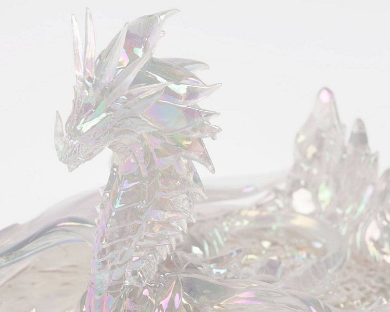 In Zusammenarbeit mit dem Guild Wars 2 Entwicklerstudio ArenaNet ist es gelungen eine hochwertige NPVC-Statue zu entwickeln, welche die Herzen von Fans, Sammlern und Guild-Wars-Enthusiasten höherschlagen lässt. Die Statue des Elder Dragons ist in dem aufwändigen \"vacuplate\" Verfahren produziert worden um der Statue den aus dem Spiel bekannten kristallinen, transparenten Look zu verpassen. Je nach Lichteinfall schimmert die Oberfläche unterschiedlich farblich und vermittelt den anmutigen und mystischen Character, den Aurene auch in Guild Wars 2 hat. Auf der mitgelieferten, ebenfalls im \"vacuplate\" Verfahren produzierten Base, wird die Statue nicht klassisch fest positioniert, sondern lässt sich herunternehmen und beliebig darauf ausrichten.