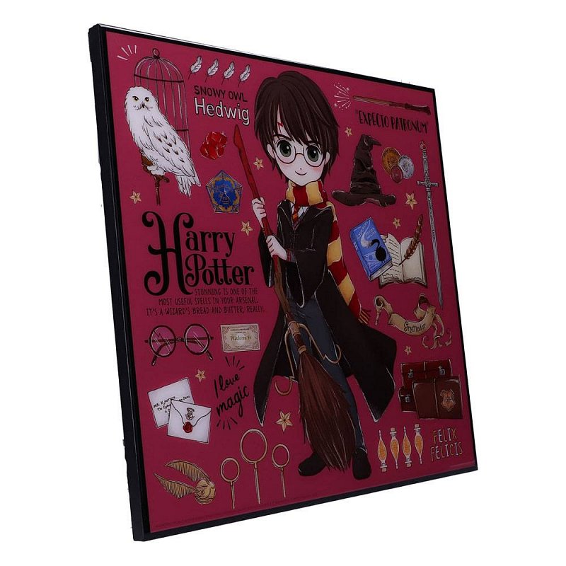 Show your love for the Harry Potter with Nemesis Now\'s range of Harry Potter Crystal Clear Art Pictures. Featuring an illustration of Harry Potter \'The Boy who Lived\' surrounded by all items relating to his story, this piece allows you to see this image with unparalleled clarity, adding a richness and depth to the artwork. The perfect addition to any Harry Potter collection!