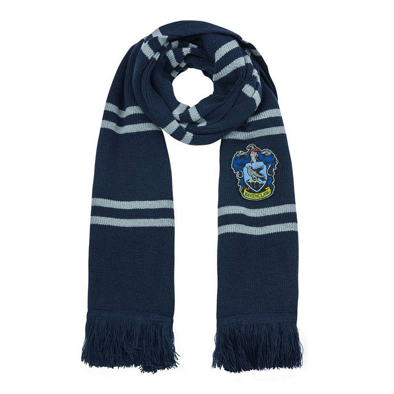 DELUXE version of the famous Ravenclaw scarf. \n\nUltra-soft scarf, very long and thick, this Ravenclaw scarf will protect you from the cold in Hogwarts. \n\nThis officially licensed long scarf is made of ultra soft acrylic, and features the colors and coat of arms of the houses Ravenclaw and a beautiful Ravenclaw house patch embroidered on one end. \n\nRavenclaws are known for their intelligence, creativity, learning. \n\nEssential costume accessory for all Ravenclaw students like Cho Chang and Luna Lovegood.\n\nLength: 250 cm / 98.4 inch\nWidth: 25 cm / 9.84 inch