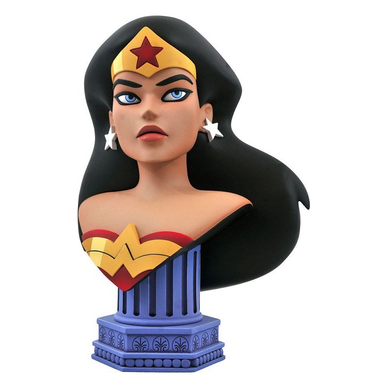 Wonder Woman is a legend, and now she\'s a Legend in 3D! The Amazonian heroine joins the L3D line of half-scale busts in her look from the Justice League animated series! Measuring approximately 10\" tall, she features detailed sculpting and paint applications, and comes packaged in a full-color box with a numbered certificate of authenticity. Limited to 1,000 pieces. Designed by Joe Allard, sculpted by Varner Studios!