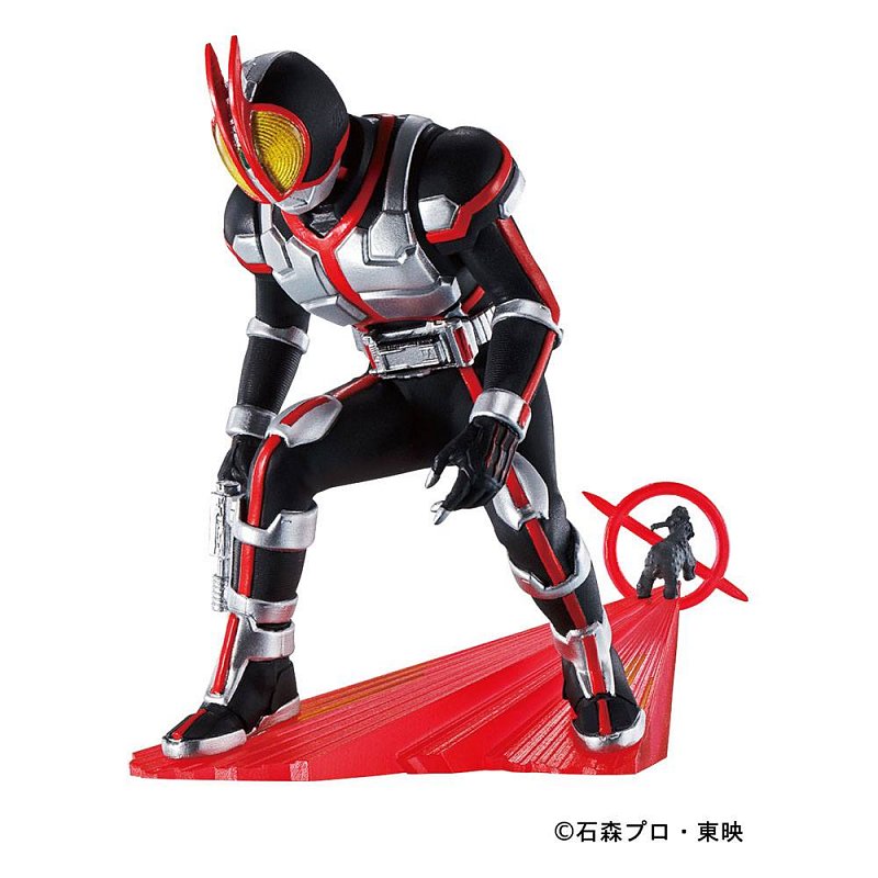 From the \"Kamen Rider\" TV series comes this assortment of 4 super cute deformed mascots. Each character stands approx. 8 cm tall and comes in a blind box packaging.