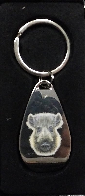 klíčenka s motivem divočáka s otvírákem na lahev