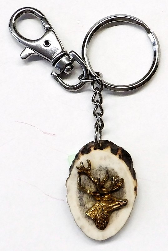 DomůVšechno zbožíDárkyOdznaky, přívěšky, doklady Klíčenka ZUBÍČEK parohová řez motiv - jelen hlava (hledící doprava)