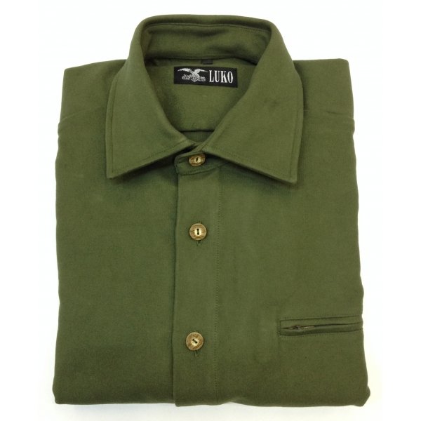 Košili doplňuje sportovní, otevřený a netužený límec, dále knoflíky z imitace paroží (vysoce kvalitní a stálobarevné).