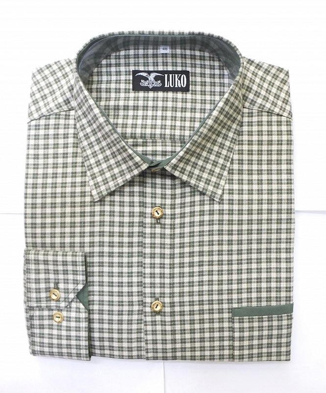 Balvněná košile s kostkovaným vzorem, parohové knoflíky, dlouhý rukáv.