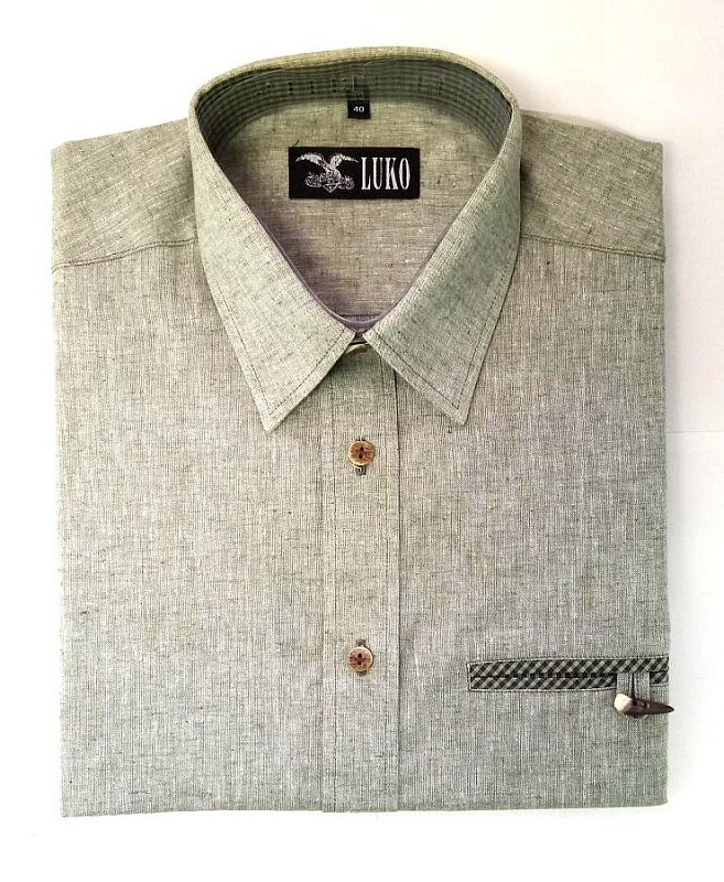 Bavlněná zelená košile s krátkým rukávem. Parohové knoflíky.