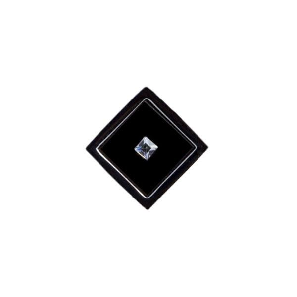 Luxusní černá ozdoba do klopy saka z polodrahokamu z onyxu osazená čirým krystalem