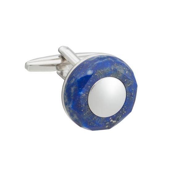Luxusní modré manžetové knoflíčky osazené facetovaným kruhovým drahokamem sodalit