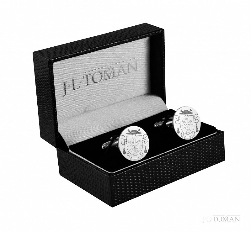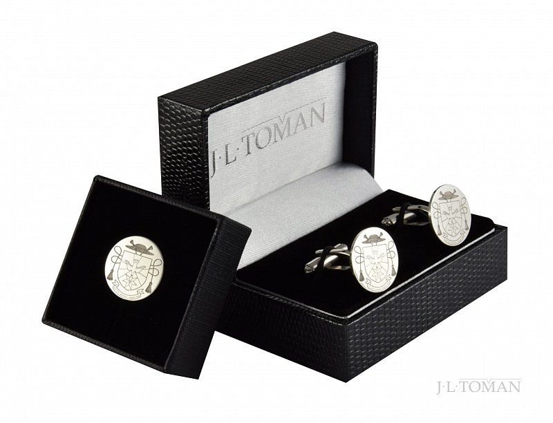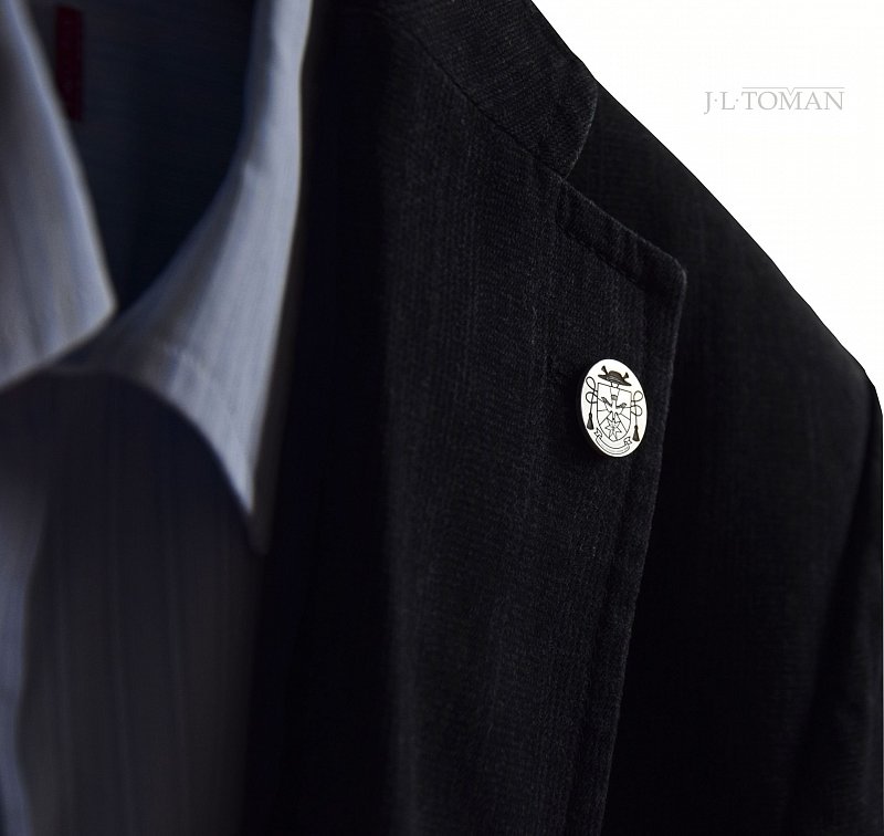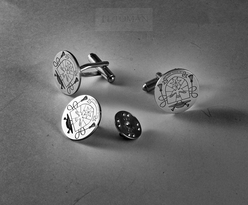 Luxusní set manžetových knoflíčků a ozdoby do klopy saka s motivem osobního erbu jsme vyráběli pro jednoho nejmenovaného duchovního. Od klienta jsme obdrželi předlohu jeho vlastního erbu, kterou jsme přenesli na manžetové knoflíčky i ozdobu do klopy. Vznikly tak krásné osobní pánské doplňky, které budou ozdobou svého majitele. My jsme podle slov stávajícího majitele odvedli výbornou práci a v budoucnu se na nás opět obrátí. Samozřejmě jsme manžetové knoflíčky i ozdobu do klopy vložili do dárkových krabiček, bez toho by to nešlo :-)