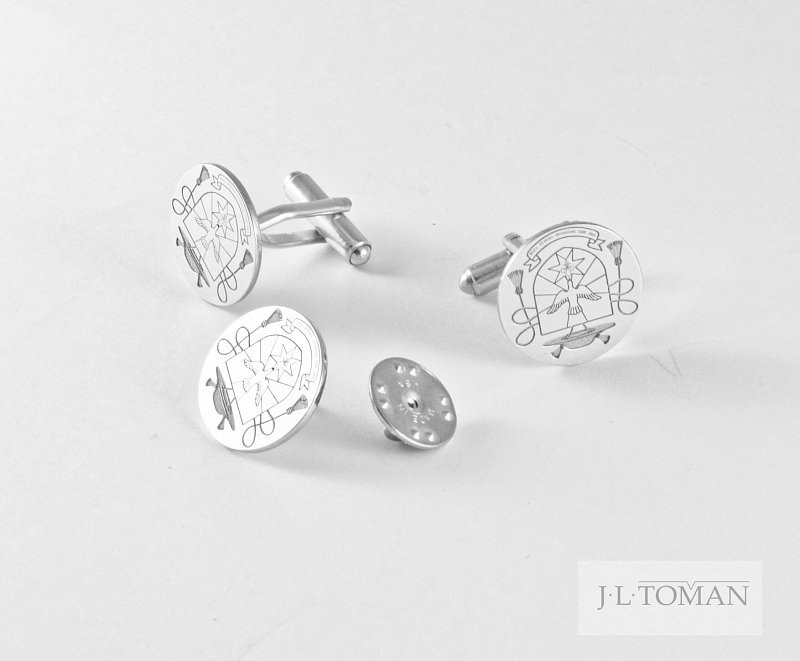 Luxusní set manžetové knoflíčky a ozdoba do klopy s osobním erbem vyrobený na zakázku