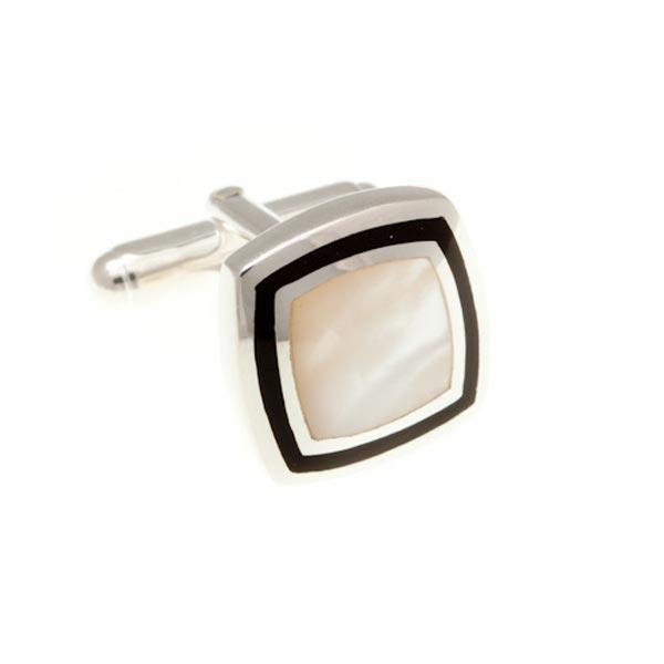 Luxusní stříbrné manžetové knoflíčky osazené bílou perletí a rámečkem z černého onyxu