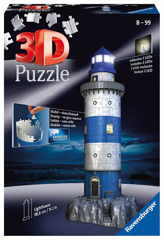 Postavte si osvětlený model noční edice Majáku v příboji s pomocí stabilních plastových dílků a nechte ho rozzářit pomocí LED světla. Dvě blikající LED diody napodobují funkci skutečného majáku.