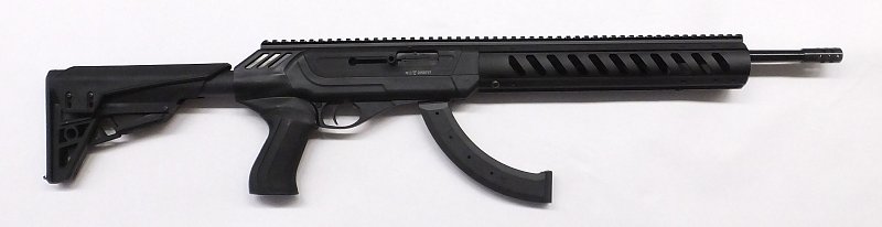 - Hlaveň je kryta v dlouhém hliníkovém předpažbí se šikmými ventilačními otvory