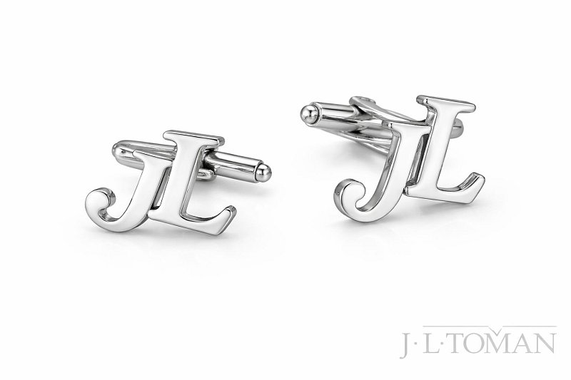 Stříbrné manžetové knoflíčky s monogramem JL vyrobené na zakázku podle grafických návrhů. Jedná se o grafický návrh č. 10.