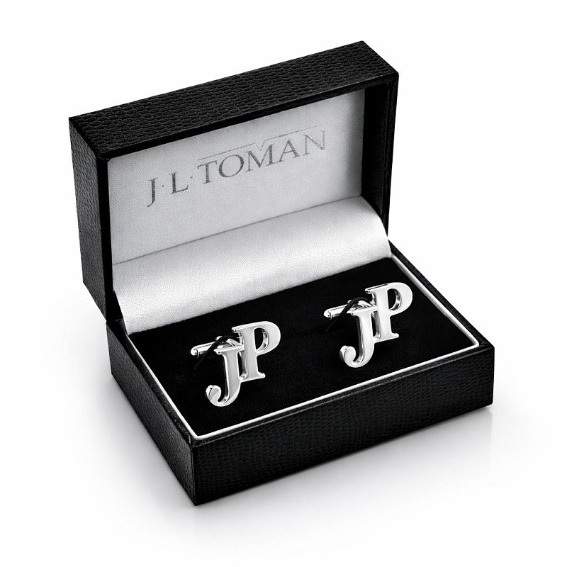 Luxusní stříbrné manžetové knoflíčky s monogramem JP (č.3 v grafickém návrhu) vyrobené na zakázku podle individuálního grafického návrhu. Každý kus vzniká ručně v naší dílně a je přizpůsoben konkrétnímu přání zákazníka.