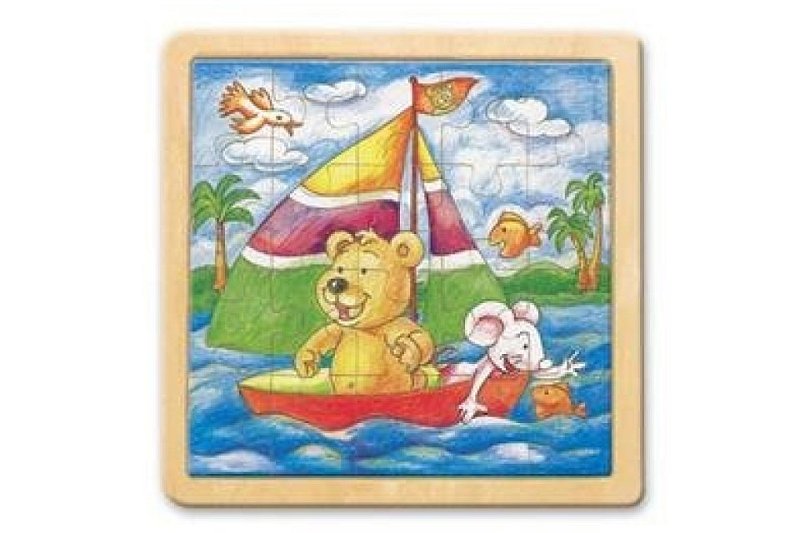 Naše nejmenší jistě potěší dřevěné puzzle Medvídek na Loďce.