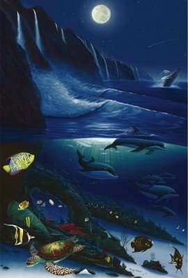 Krásu a sílu podmořského světa se dokonale daří zachytit umělci Robertu Wylandovi. Nenechte si ujít jeden z jeho originálních obrázků a složte si puzzle Měsíční Svit. Na kouzelném obrázku kulatý měsíc osvětluje tmavě modrou mořskou hladinu, pod kterou vidíme hejna pestrobarevných rybek a skupinku delfínů, nejoblíbenějších mořských savců. Jeden z delfínů se vzpíná proti světlu měsíce ve svém elegantním výskoku ve vzpřímeném postoji, který dokáže za pomoci své silné ocastní ploutve.