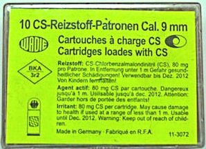 Obranný náboj ráže 9mm pro revolvery. Obsahuje 80mg chlorbenzalmalondinitrilu - látky účinkující na centrální nervovou soustavu tzv. nervový plyn. V dané koncentraci způsobuje zastavení útočníka, přitom nepůsobí trvalé poškození zdraví. Optimální vzdálenost 3m, účinná vzdálenost 1-7m,