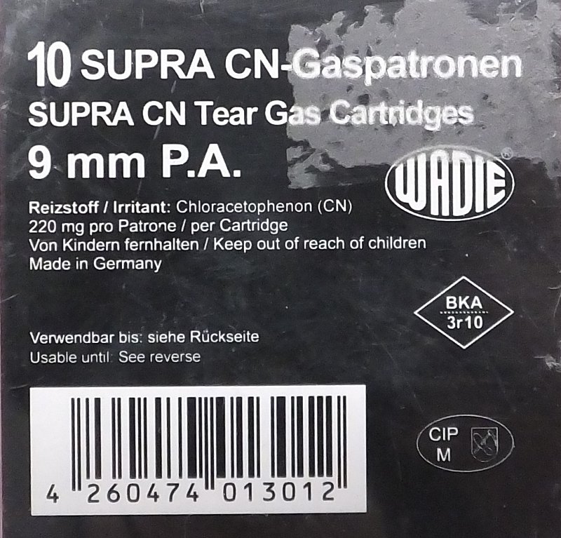Plynový náboj, obsahuje 220 mg CN (Chloracetophenon), extra silné.