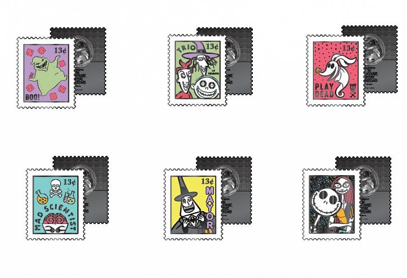 These enamel pins from The Nightmare Before Christmas are designed like stamps and are perfect for collecting. Each features a different character from the movie. Which one will you get? It\'s a surprise!