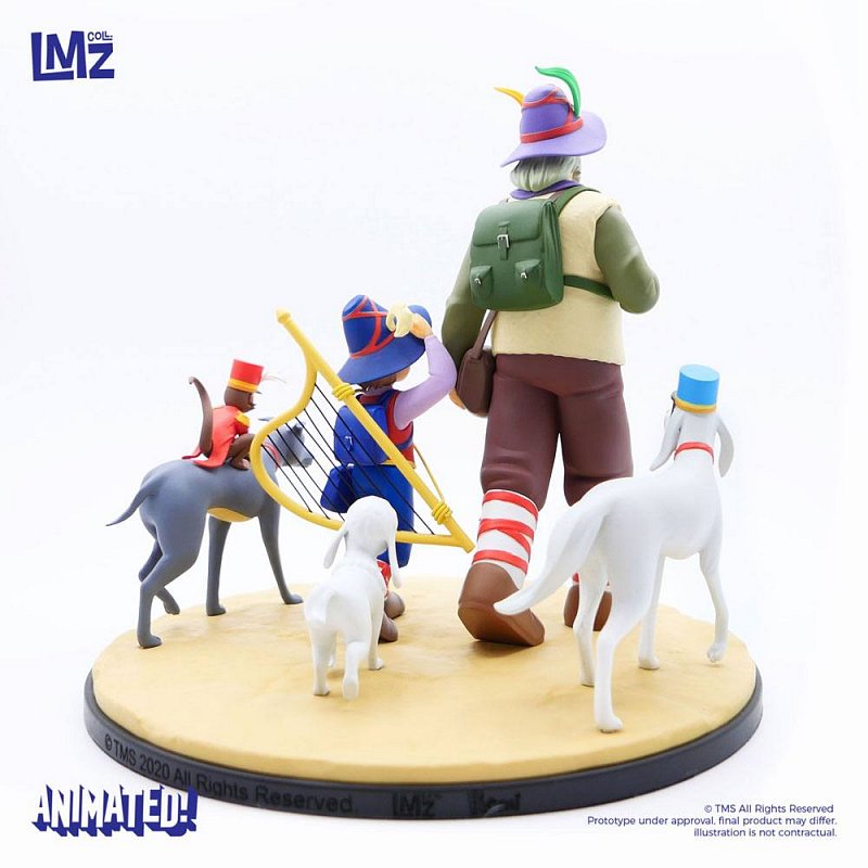 From the anime series \"Nobody\'s Boy: Remi\" comes this statue of Remi, Vitalis, Dolce, Zerbino & Joli-Coeur. It made of resin and measures approx. 22 cm.