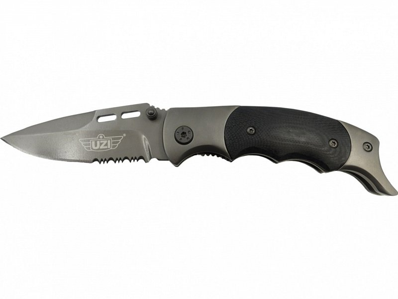 Kapesní zavírací nože Uzi Probe, kombinovaná SS čepel, hladká, vroubkovaná, kovová rukojeť s G10 střenkou.