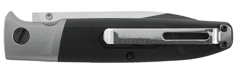 Rukojeť plné velikosti má kovovu základnu, který je následně opatřeba polymerovou střenkou s vroubkovaným profilem pro bezpečný a stabilní úchop nože. Dále na rukojeti najdete sponu pro zajištění nože v kapse.