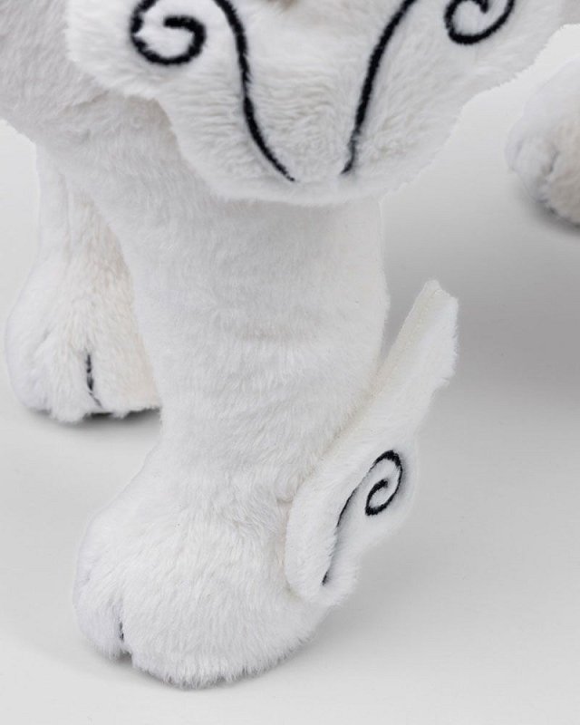 The protagonist \"Amaterasu\" from the Okami videogame series by Capcom finds its way into the worldwide fan collections as a highly detailed and cuddly plush. Light up your world with the sacred glow of the sun goddess Amaterasu. The plush is 50 cm long, 26 cm tall and made from recycled polyester. It features a detachable reflector and embroidered paws. All carbon emissions have been offset through the international Plastic Bank project, making it 100% climate neutral as well. The hangtag is made from FSC certified recycled cardboard, printed with plant based and mineral oil free inks, which are eco-friendly and don\'t interfere with the later recycling process.