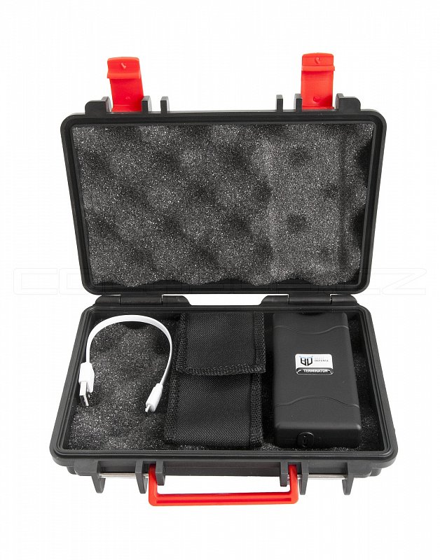 Pralyzér Best Defense Terminator je dodáván s nabíjecím USB kabele s koncovkami USB / Micro USB a nylonovým pouzdrem na opasek. Vše je baleno v dárkovém masivním plastovém kufříku.