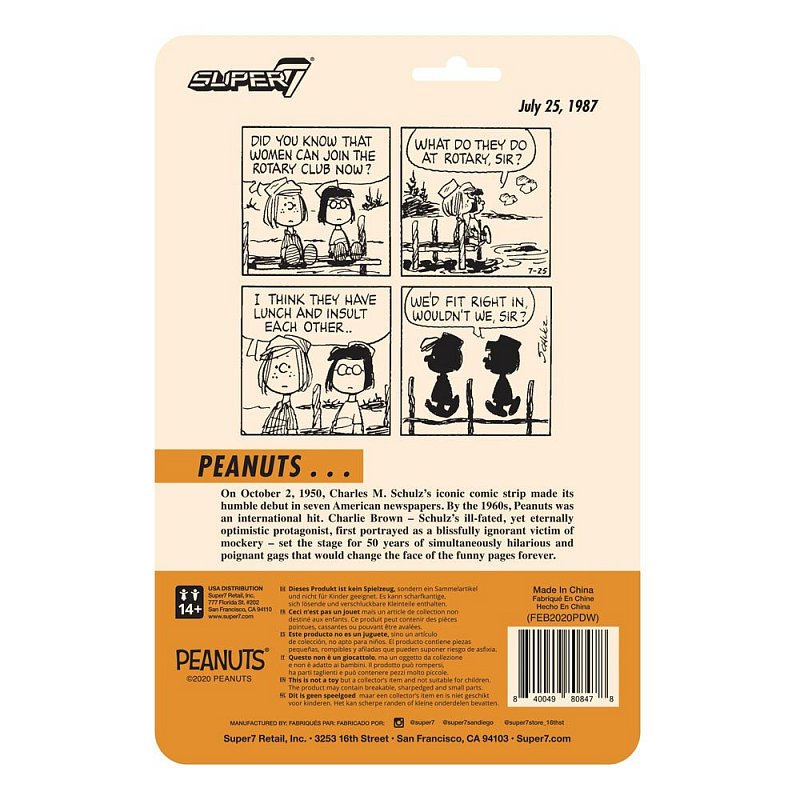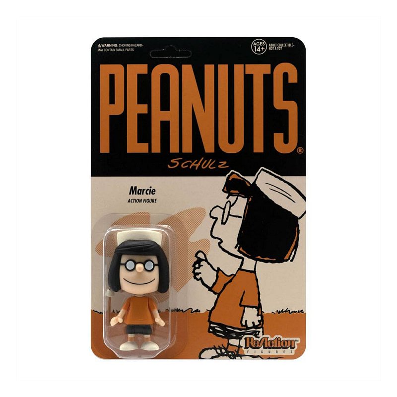 Marcie can\'t wait to stare up at the night sky, count the stars, and roast marshmallows over an open flame. The Marcie 3.75\" ReAction Figure comes with a marshmallow on a stick, and is on a cardback featuring art from the 1987 Mr. Sack comic storyline often cited by Charles Schulz as a favorite. Add the whole wave of Peanuts campers to your collection today!