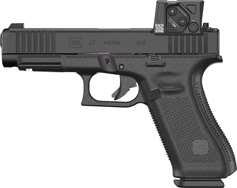 Glock 47 A-CUT je pistole velikosti STANDARD v ráži 9 mm Luger v konfiguraci s kolimátorem Aimpoint COA, se závěrem s modulárním optickým systémem konstruovaným pro kolimátor Aimpoint COA.