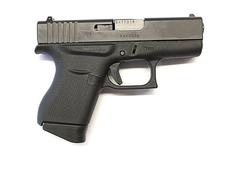 Nejmenší pistole GLOCK s jednořadým zásobníkem v ráži 9x19 vhodná pro skryté nošení. Sdandardně dodávána v sadě s jedním zásobníkem na 6 nábojů a druhým zásobníkem s botkou též na 6 nábojů