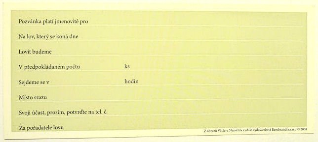 Pozvánky na lov s různými motivy.