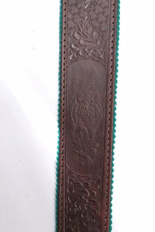 Kožený řemen na zbraň podšitý filcem o šířce max. 5 cm, délka cca 110 cm